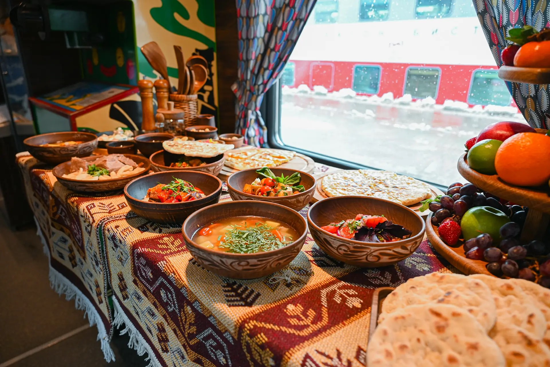 Но есть ещё одна черта, делающая этот круиз по-настоящему уникальным. Компания ООО «НТС» превратила вагон-ресторан в живую кулинарную карту Кавказа – здесь пассажиров знакомят с регионом через его подлинные вкусы. Меню составлено так, что каждая трапеза становится маленьким, но ярким открытием.
